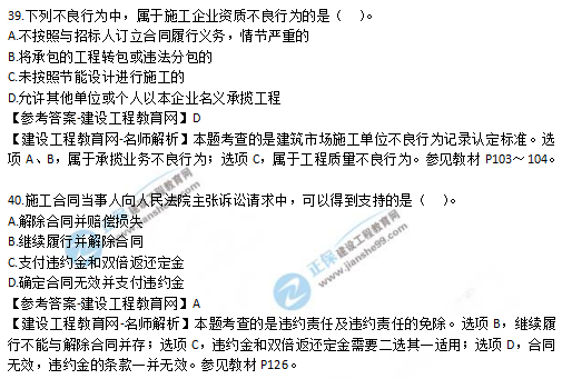 2019年二級(jí)建造師法規(guī)考試真題及答案解析36-40