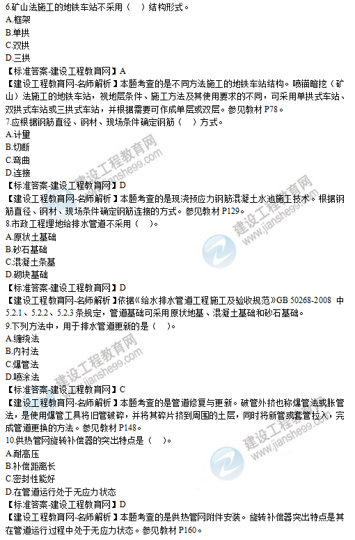 2019年二級建造師市政實(shí)務(wù)選擇題6-10試題及答案解析
