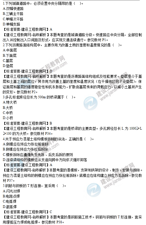 2019年二級建造師市政實務(wù)選擇題1-5試題及答案解析