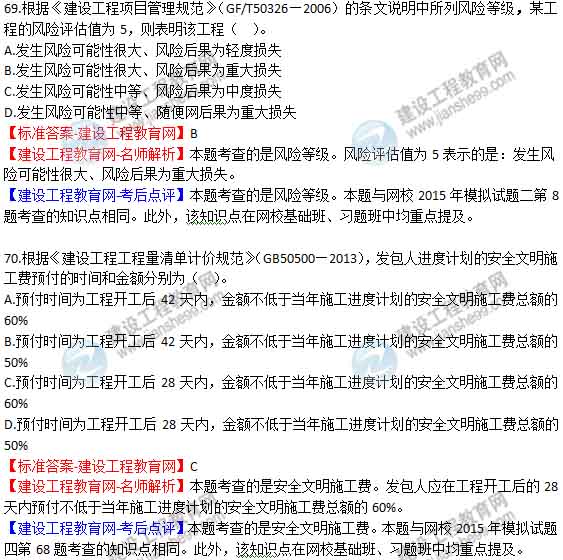 【老師解析】2015年二級(jí)建造師施工管理試題及答案(67-72題)