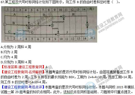 【建設(shè)工程教育網(wǎng)-考后點(diǎn)評(píng)】本題考查的是單價(jià)合同。本題與網(wǎng)校2015年模擬試題二第61題考查的知識(shí)點(diǎn)相同。此外,該知識(shí)點(diǎn)在網(wǎng)?;A(chǔ)班、習(xí)題班中均重點(diǎn)提及。