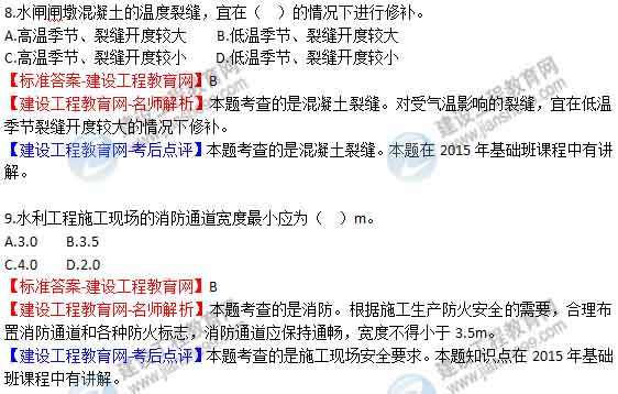 【老師解析】2015年二建水利水電實(shí)務(wù)試題及答案(7-12題)
