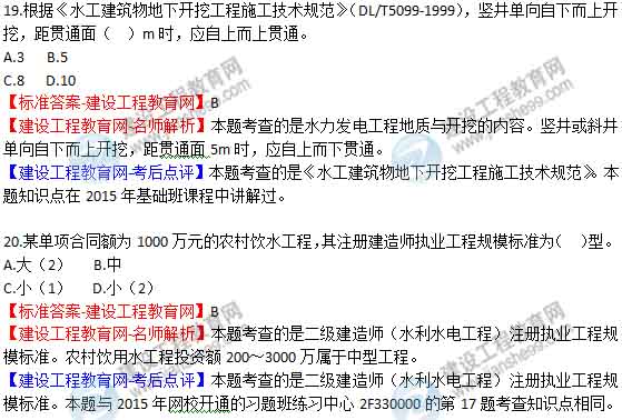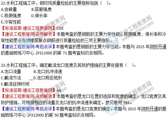 【老師解析】2015年二級建造師水利水電實務(wù)試題及答案(19-24題)