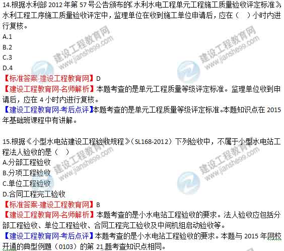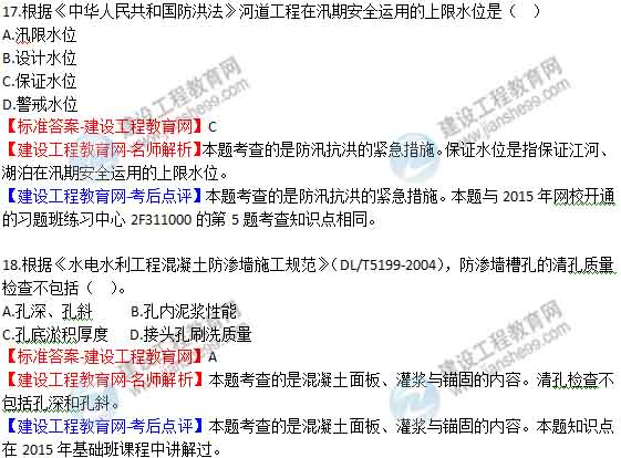 【老師解析】2015年二級(jí)建造師水利水電實(shí)務(wù)試題及答案(13-18題)
