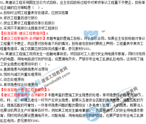 2018年二建《建設(shè)工程施工管理》試題及答案解析(51-60)