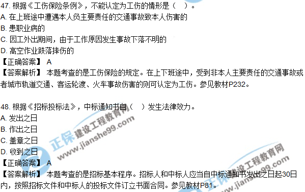 2018年二建《法規(guī)及相關知識》試題及答案解析(41-50)