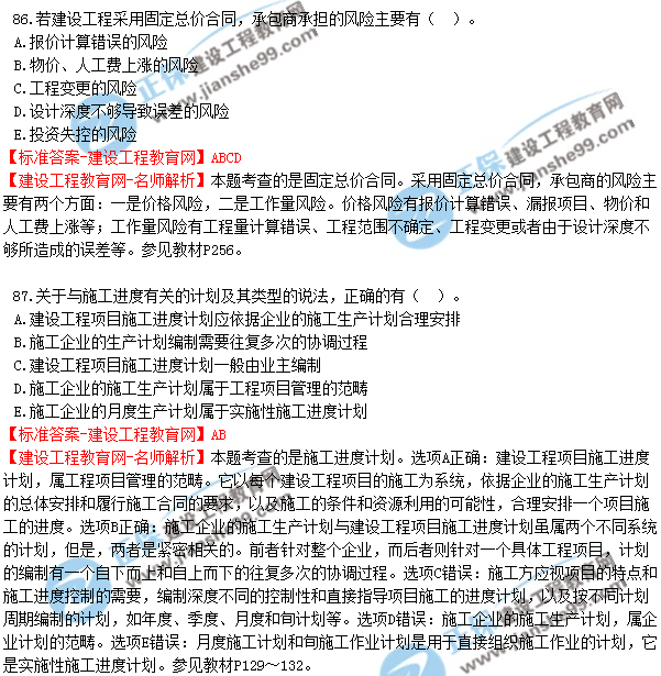 2018年二建《建設(shè)工程施工管理》試題及答案解析(81-90)