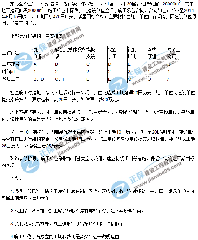 2018年二建《建筑工程管理與實(shí)務(wù)》試題及答案解析(案例一)