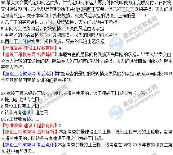 【建設工程教育網-考后點評】本題考查的是民事訴訟的審判和執(zhí)行程序。該考點與網校2015年模擬試題一第60題相似。