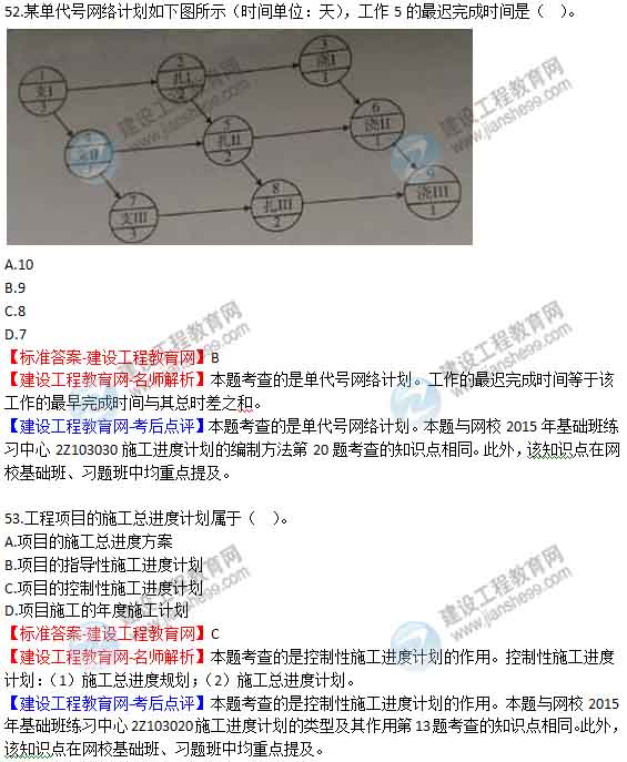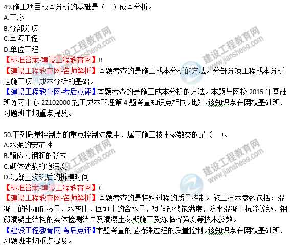 2015年二級建造師《建設工程施工管理》答案及解析由老師整理而成,部分網(wǎng)站未經(jīng)許可擅自轉(zhuǎn)載、抄襲,造成內(nèi)容有所缺失或錯誤,請大家以建設工程教育網(wǎng)發(fā)布為準!二建試題答案