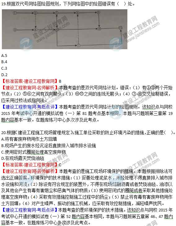 2015年二級建造師《建設(shè)工程施工管理》答案及解析由老師整理而成,部分網(wǎng)站未經(jīng)許可擅自轉(zhuǎn)載、抄襲,造成內(nèi)容有所缺失或錯誤,請大家以建設(shè)工程教育網(wǎng)發(fā)布為準(zhǔn)!2015二建答案