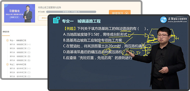 老師簡(jiǎn)介:一/二級(jí)建造師,高級(jí)工程師,從事市政施工項(xiàng)目多年,授課風(fēng)格幽默詼諧,多采用手繪圖形式教學(xué),通俗易懂。
