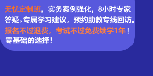 · 續(xù)學(xué)保障 選擇無憂定制班,當(dāng)期考試報(bào)名審核未通過,報(bào)名結(jié)束后30天內(nèi)申請退費(fèi)或關(guān)閉課程下期免費(fèi)再學(xué)(不包含考后審核)。