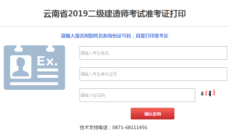 2019年云南二級(jí)建造師準(zhǔn)考證打印入口5月18日已開通