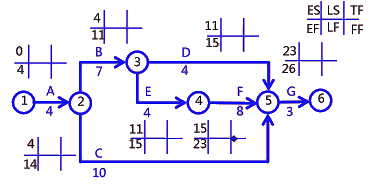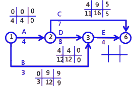 ?、谕瘘c(diǎn)相連的工作ES本=0;EF本=ES本+D本