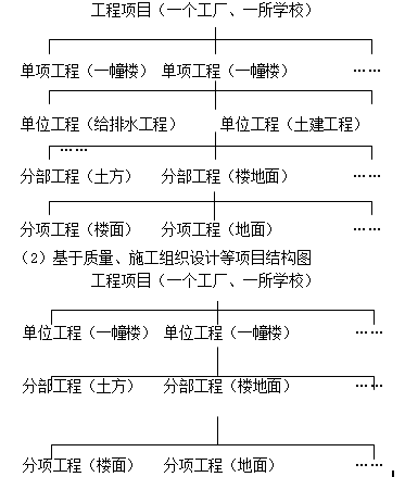 1.一些居住建筑開發(fā)項目,可根據(jù)建設的時間對項目的結構進行逐層分解,而對一些工業(yè)建設項目往往按其生產(chǎn)子系統(tǒng)的構成對項目的結構進行逐層分解。