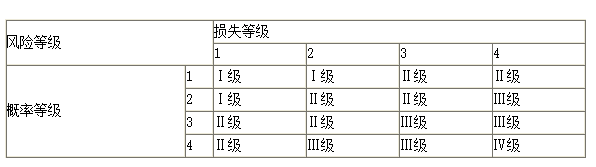 2.風(fēng)險(xiǎn)事件的風(fēng)險(xiǎn)等級(jí)由風(fēng)險(xiǎn)發(fā)生概率等級(jí)和風(fēng)險(xiǎn)損失等級(jí)間的關(guān)系矩陣確定。