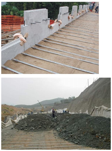 特點:利用拉筋與土之間的摩擦作用,改善土體的變形條件和提高土體的工程特性,達(dá)到穩(wěn)定土體的目的。一般應(yīng)用于地形較為平坦且寬敞的填方路段上,在挖方路段或地形陡峭的山坡,由于不利于布置拉筋,一般不宜使用。