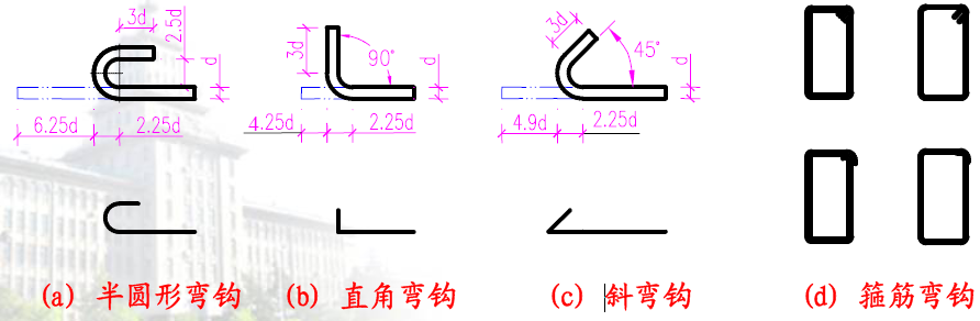 常見的幾種鋼筋彎鉤形式及簡(jiǎn)化畫法