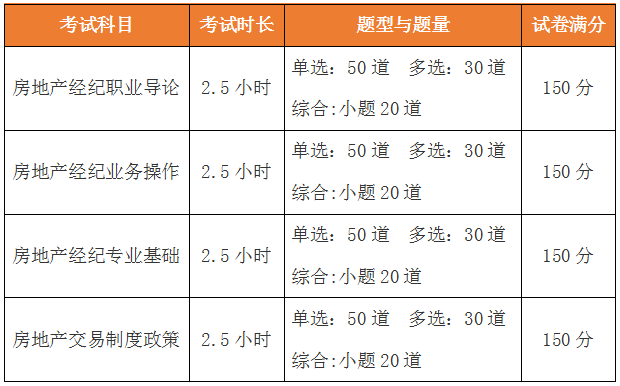 大連2021年上半年房地產經紀人各科考試時長及題型:
