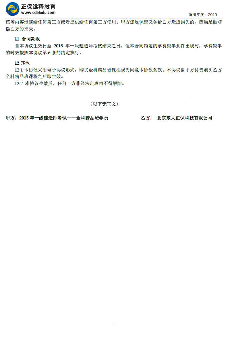 一級建造師全科“精品班”協(xié)議書