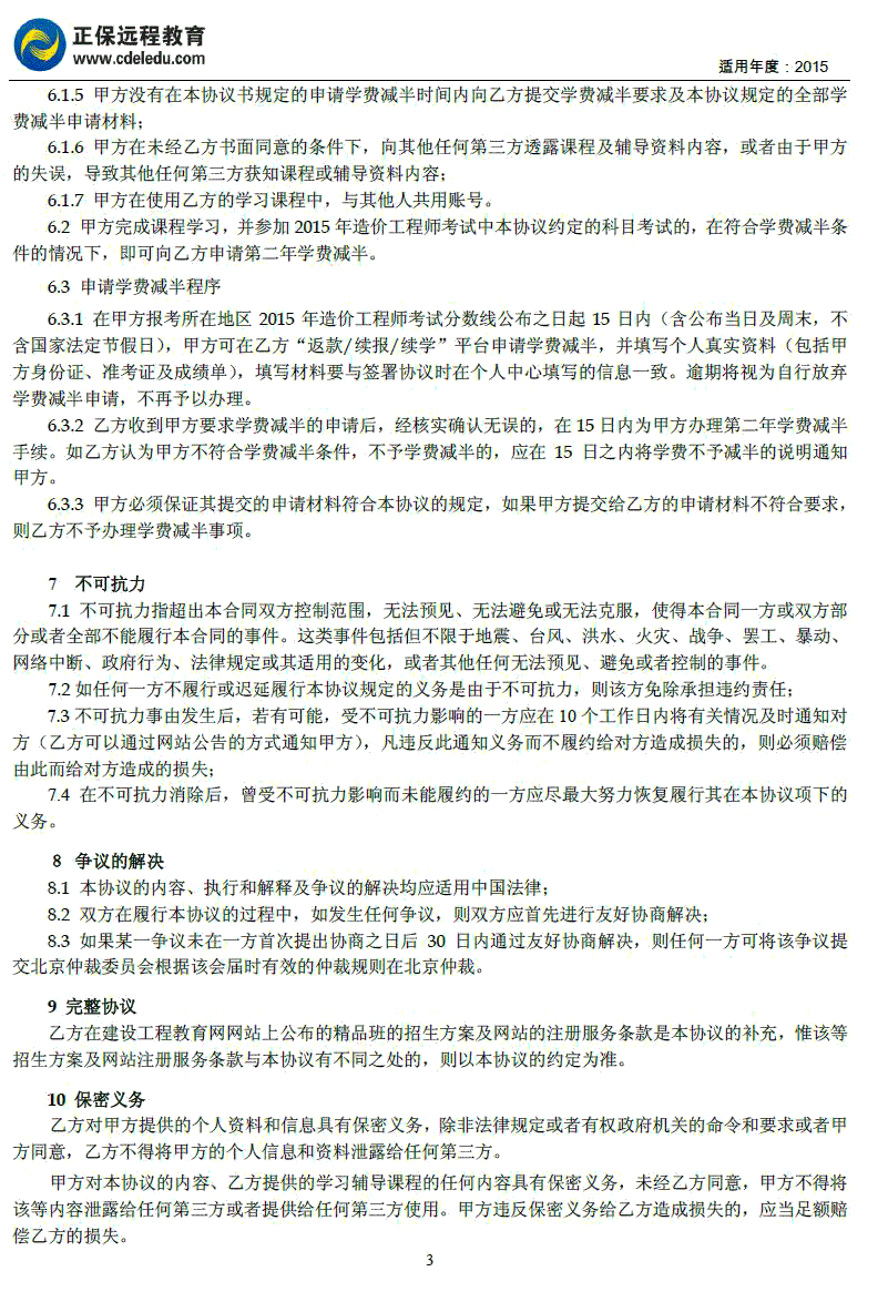 造價(jià)工程師“精品班”協(xié)議書(shū)
