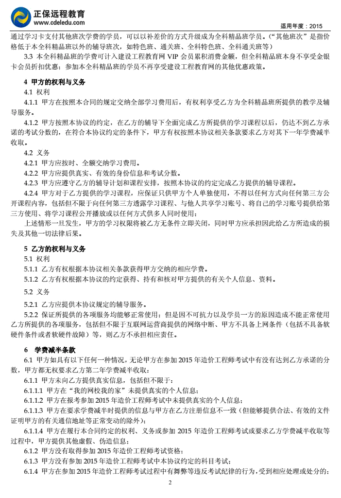 造價(jià)工程師“全科精品班”協(xié)議書(shū)