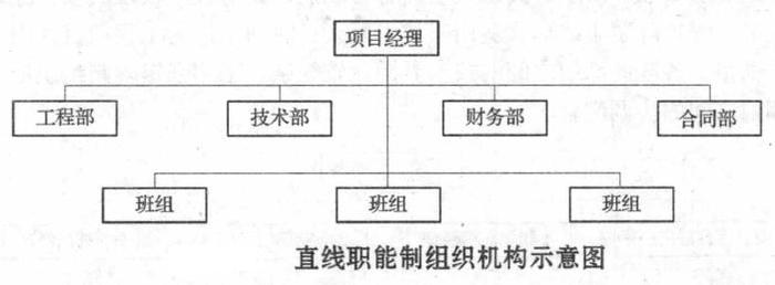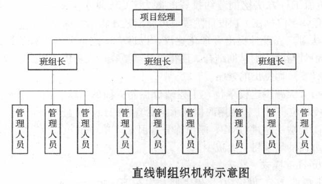 直線制是一種最簡單的組織機(jī)構(gòu)形式。在這種組織機(jī)構(gòu)中,各種職位均按直線垂直排列,項目經(jīng)理直接進(jìn)行單線垂直領(lǐng)導(dǎo)。