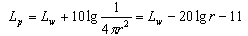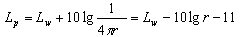由平方反比定律,可知點聲源在無反射的自由場中輻射聲波時,聲場中任一點的聲壓級可由式(3-13)計算: