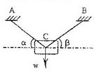 2、一個重量為W的物體,通過兩根繩索AC和BC懸吊,下列四種情況中,繩子的拉力最大的是( ?。?。