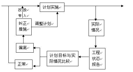2.在充分了解被動(dòng)控制的循環(huán)過程閉合回路流程圖的基礎(chǔ)上進(jìn)一步細(xì)化,即可繪出目標(biāo)控制流程框圖。細(xì)化時(shí)主要是將實(shí)施的實(shí)際結(jié)果與計(jì)劃目標(biāo)相比較,比較結(jié)果可能出現(xiàn)二種情況:一種是呆發(fā)生偏離;另一種是發(fā)生了偏離。前者屬于正常情況,可繼續(xù)按原計(jì)劃執(zhí)行;后者是不正常情況,應(yīng)采取措施糾正。而糾正的措施又有兩種途徑,一是調(diào)整計(jì)劃,二是改變投入的資源。