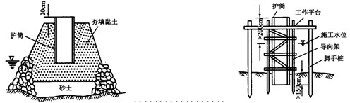 1、除在旱地施工外,場(chǎng)地為淺水時(shí),宜采用筑島法施工。島的高度應(yīng)高出最高施工水位0.5~1.0m.