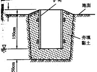3、旱地或筑島平臺(tái)處護(hù)筒可用挖坑埋設(shè)法,護(hù)筒底部和四周所填黏質(zhì)土必須分層夯實(shí)。