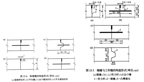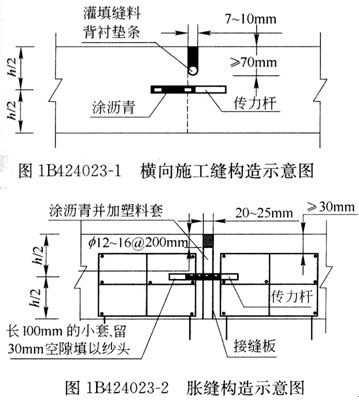 縱向接縫是根據(jù)路面寬度和施工鋪筑寬度設(shè)置。一次鋪筑寬度小于路面寬度時,應(yīng)設(shè)置帶拉桿的平縫形式的縱向施工縫。一次鋪筑寬度大于4.5m時,應(yīng)設(shè)置帶拉桿的假縫形式的縱向縮縫……橫向接縫:橫向施工縫盡可能選在縮縫或脹縫處。前者采用加傳力桿的平縫形式,后者同脹縫形式。特殊情況下,采用設(shè)拉桿的企口縫形式。