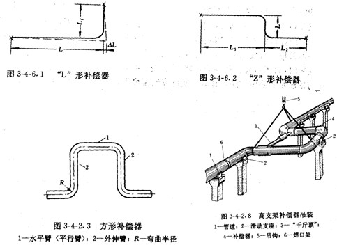 L形、Z形、Ⅱ形補(bǔ)償器一般在施工現(xiàn)場(chǎng)制作,制作需采用優(yōu)質(zhì)碳素鋼無(wú)縫鋼管。通常Ⅱ形補(bǔ)償器應(yīng)水平安裝,平行臂應(yīng)與管線坡度及坡向相同,垂直臂應(yīng)呈水平。當(dāng)Ⅱ形彎朝上安裝時(shí),應(yīng)在最高點(diǎn)安裝排氣裝置;否則應(yīng)在最低點(diǎn)安裝疏水裝置,但必須保證整個(gè)補(bǔ)償器的各個(gè)部分處在同一個(gè)平面上。