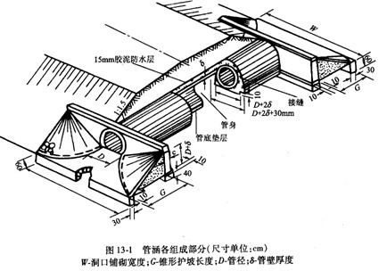 道路下跨長度小于8m和單跨長度小于5m的構(gòu)筑物稱為涵洞。涵洞有管涵、箱涵、蓋板涵,一般采用管涵形式。