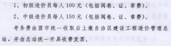 2011年內(nèi)蒙古造價(jià)員考試報(bào)名費(fèi)用