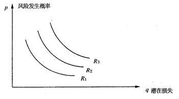 為此,需要引入風(fēng)險量的概念。所謂風(fēng)險量,是指各種風(fēng)險的量化結(jié)果,其數(shù)值大小取決于各種風(fēng)險的發(fā)生概率及其潛在損失。如果以R表示風(fēng)險量,p表示風(fēng)險的發(fā)生概率,q表示潛在損失,則R可以表示為p和q的函數(shù),即: