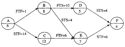 10. 某工程單代號搭接網(wǎng)絡(luò)計劃如下圖所示,節(jié)點中下方數(shù)字為該工作的持續(xù)時間,其中的關(guān)鍵工作為( )。