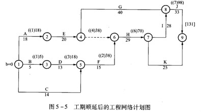 答案:關(guān)于工期順延(工期順延后的工程網(wǎng)絡(luò)計劃圖,如圖5 -5所示)和經(jīng)濟索賠。