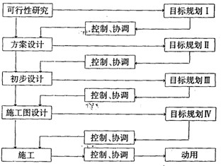 由圖3-5可知,建設(shè)一項(xiàng)工程,首先要根據(jù)業(yè)主的建設(shè)意圖進(jìn)行可行性研究并制定目標(biāo)規(guī)劃I,即確定建設(shè)工程總體投資、進(jìn)度、質(zhì)量目標(biāo)。例如,就投資目標(biāo)而言,目標(biāo)規(guī)劃I就表現(xiàn)為投資估算,同時(shí)要確定實(shí)現(xiàn)建設(shè)工程目標(biāo)的總體計(jì)劃和下階段工作的實(shí)施計(jì)劃。然后,按照目標(biāo)規(guī)劃I的要求進(jìn)行方案設(shè)計(jì)。在方案設(shè)計(jì)的過程中要根據(jù)目標(biāo)規(guī)劃I進(jìn)行控制,力求使方案設(shè)計(jì)符合目標(biāo)規(guī)劃I的要求。同時(shí),根據(jù)輸出的方案設(shè)計(jì)還要對(duì)目標(biāo)規(guī)劃I進(jìn)行必要的調(diào)整、細(xì)化,以解決目標(biāo)規(guī)劃I中不適當(dāng)?shù)牡胤?。在此基礎(chǔ)上,制定目標(biāo)規(guī)劃Ⅱ,即細(xì)度和精度均較目標(biāo)規(guī)劃I有所提高的新的投資估算。然后根據(jù)目標(biāo)規(guī)劃Ⅱ進(jìn)行初步設(shè)計(jì),在初步設(shè)計(jì)過程中進(jìn)行控制,例如,進(jìn)行限額設(shè)計(jì),根據(jù)初步設(shè)計(jì)的結(jié)果制定目標(biāo)規(guī)劃Ⅲ,即設(shè)計(jì)概算。至于目標(biāo)規(guī)劃Ⅳ,是在施工圖設(shè)計(jì)基礎(chǔ)上制定的。其最初表現(xiàn)為施工圖預(yù)算,經(jīng)過招標(biāo)投標(biāo)后則表現(xiàn)為標(biāo)底和合同價(jià)。最后,在施工過程中,要根據(jù)目標(biāo)規(guī)劃Ⅳ進(jìn)行控制,直至整個(gè)工程建成。