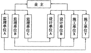 圖5-6業(yè)主委托多家監(jiān)理單位進行監(jiān)理的模式