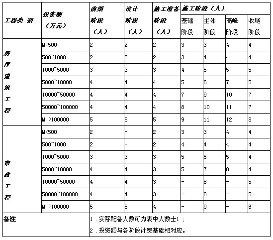 表6一6工程項(xiàng)目監(jiān)理人數(shù)配置參照表