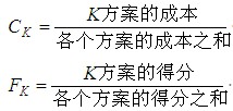 在價(jià)值工程的原理中,必須熟練掌握基本公式、價(jià)值系數(shù)的計(jì)算,并明確其評(píng)價(jià)(選擇)標(biāo)準(zhǔn)。例如,面臨若干個(gè)可行方案時(shí),某一方案(K)的成本系數(shù)(CK)、功能(評(píng)價(jià))系數(shù)(FK),可用以下公式進(jìn)行計(jì)算:
