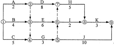2.某工程雙代號網(wǎng)絡(luò)計劃如下圖所示,其關(guān)鍵線路有( C )條。
