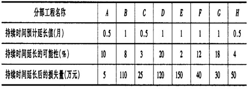 根據(jù)圖2可知,風(fēng)險(xiǎn)等級(jí)為“大”和“很大”的分部工程應(yīng)滿(mǎn)足條件:持續(xù)時(shí)間延長(zhǎng)的可能性≥15%,損失≥20萬(wàn)元,或5%≤持續(xù)時(shí)間延長(zhǎng)的可能性≤15%,損失≥100萬(wàn)元,因此風(fēng)險(xiǎn)等級(jí)為“大”和“很大”的有:B.G、D.