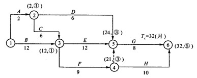 工期為32個(gè)月,關(guān)鍵線(xiàn)路上的分部工程有B.E.G.
