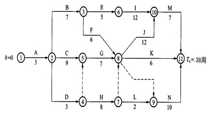 2. H工作從8周延長(zhǎng)到12周,L工作從2周延長(zhǎng)到3周。對(duì)修改后的施工總進(jìn)度計(jì)劃的工期不會(huì)產(chǎn)生影響。