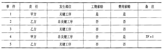 2.索賠事件分析見表1(2分)。
