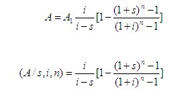 | 等比年值換算為等額年值 | (A/S,I,n) | 等比序列年費用系數(shù) |